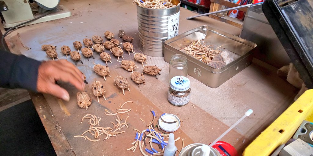 工房を見学させていただくと、制作中の品々が。まさに天然素材!