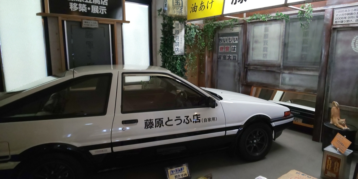 土地柄「頭文字D(イニシャルD)」は欠かせませんね。こちらの店舗看板は、実写版映画で使用された「藤野屋豆腐店」が閉店した際に寄贈されたものだそうです。